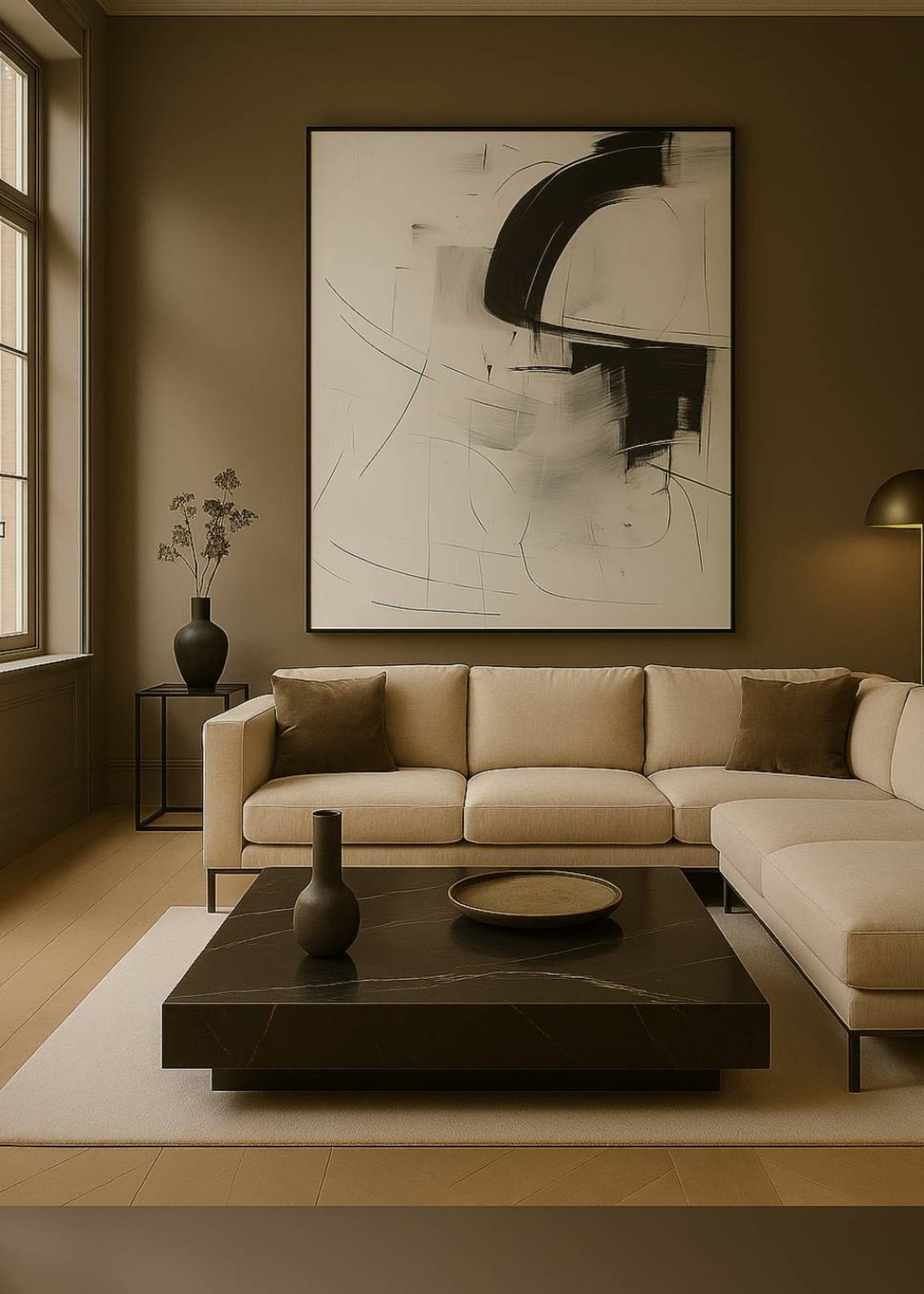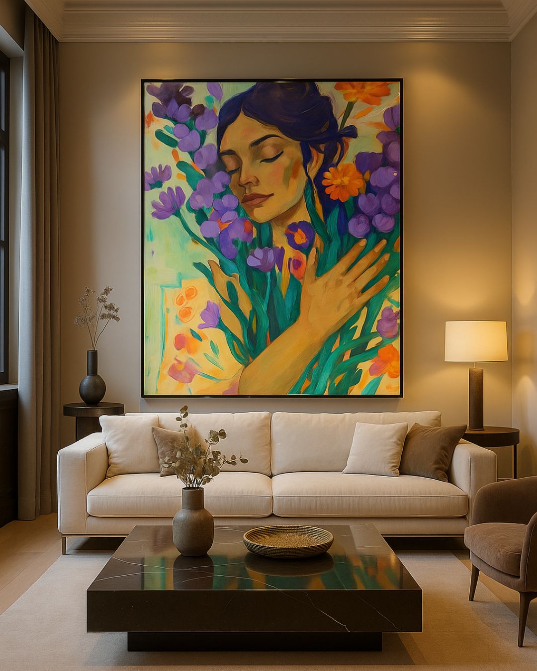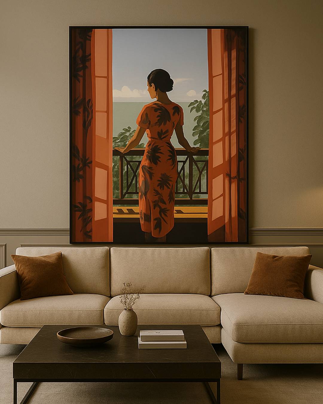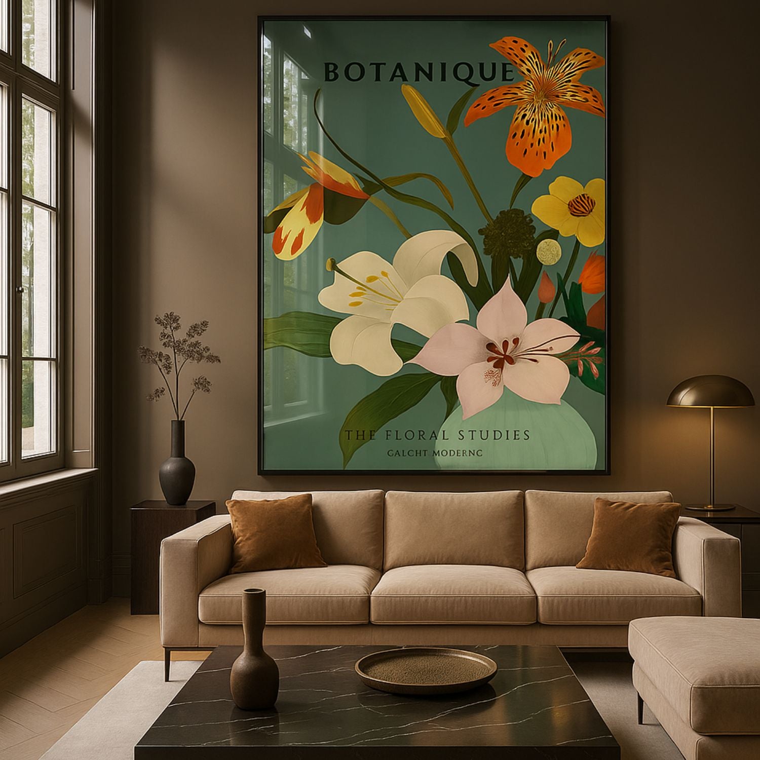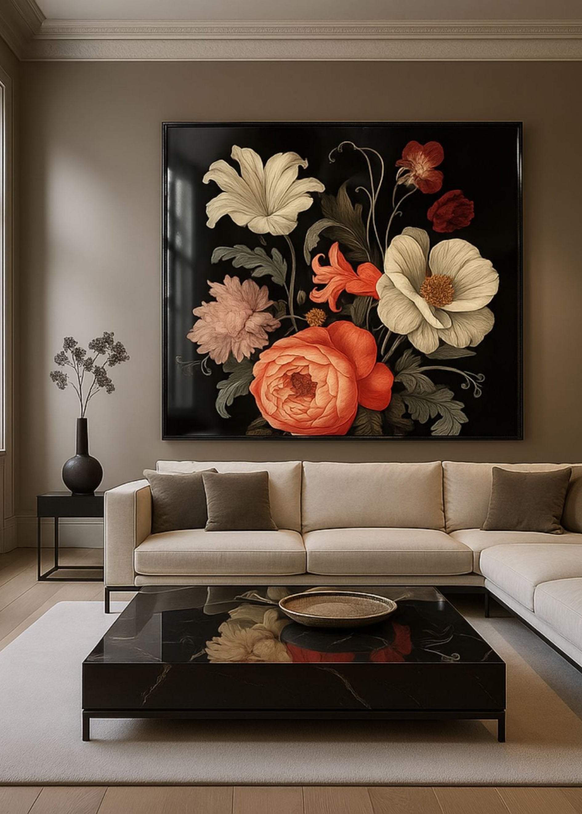 Met een zwarte baklijst krijgt canvas een moderne upgrade. De lijst geeft ruimte tussen doek en rand, wat zorgt voor een elegant, zwevend effect aan de muur.