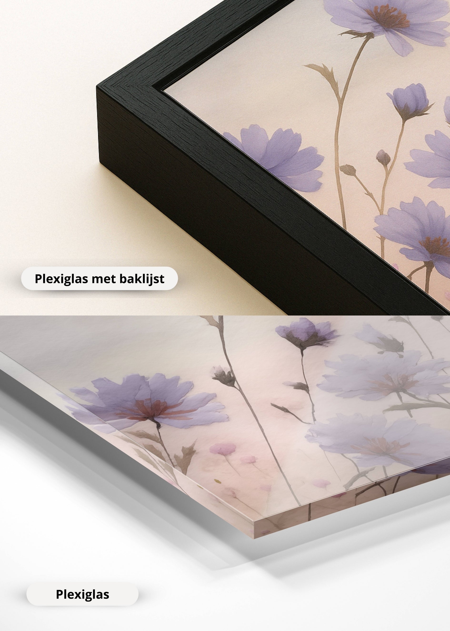Dankzij de krasbestendige en stevige eigenschappen is plexiglas uitermate geschikt voor gebruik binnenshuis. Voor een extra verfijnde look is elke print ook verkrijgbaar met een stijlvolle baklijst. Deze subtiele omlijsting geeft het geheel een galeriewaardige uitstraling en laat het kunstwerk nog meer spreken.