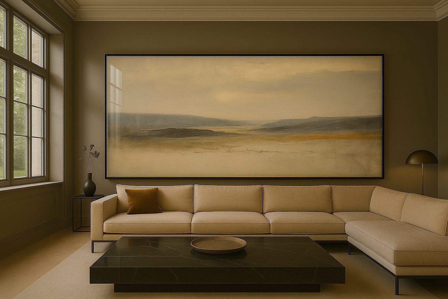 Onze tip: kies liever een maatje groter dan je in eerste instantie denkt. Veel klanten laten ons weten dat ze achteraf toch liever voor een groter kunstwerk waren gegaan, omdat het net wat meer impact maakt in hun interieur.